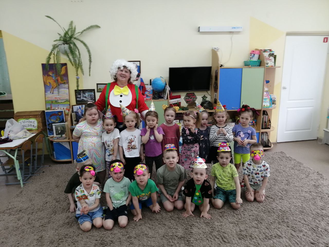 Сегодня к детям группы"Незабудка" и группы "Цыплята" пришли клоуны Кнопа и Тепа. Они рассказали детям о празднике 1 апреля "Дне смеха". Ребята играли в игры, пели песнии смешили друг друга.