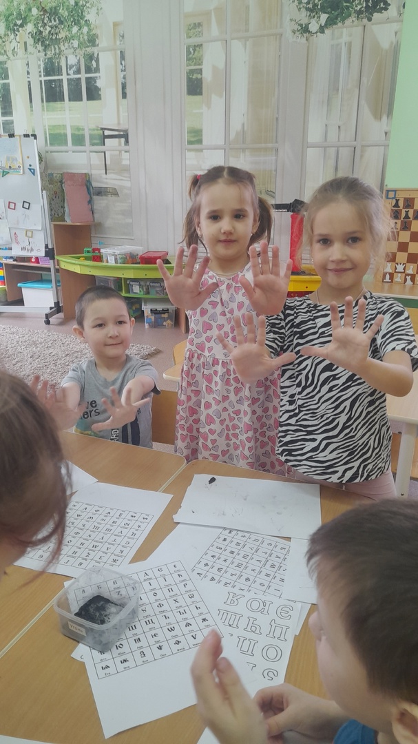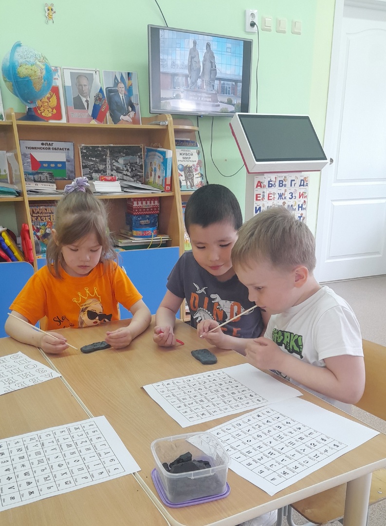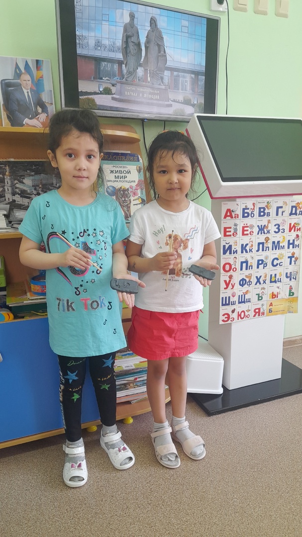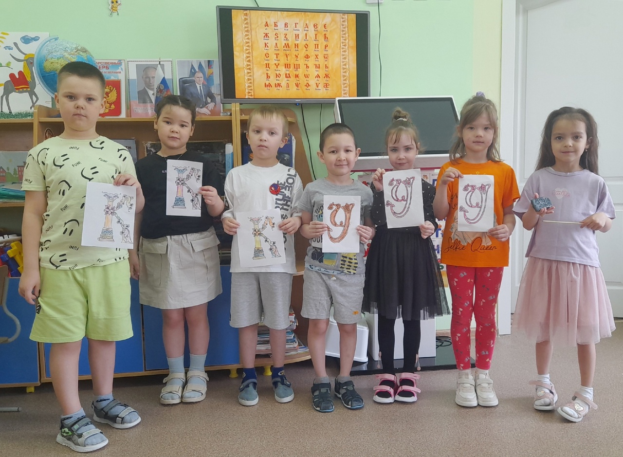 Дети попробовали рисовать на глиняных дощечках, написать угольком на бумаге. Узнали создателей славянской азбуки: Кирилла и Мефодия. Рассмотрели её, сравнили буквы с нашим алфавитом, искали сходства и различия. Раскрасили понравившиеся «буквы из прошлого».