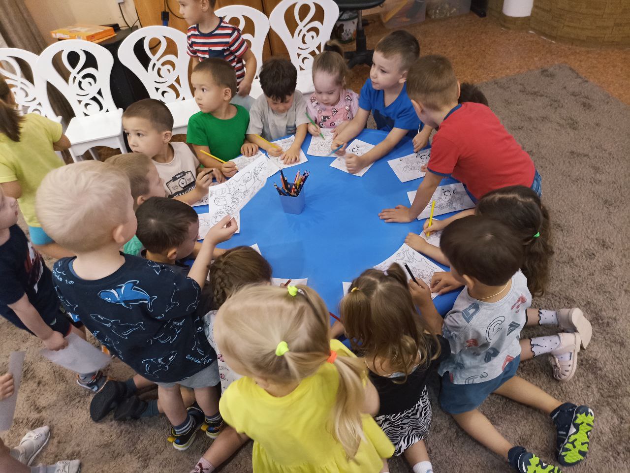 Сказка живет в нашем сердце, она открывает нам глаза на добро и зло. И мы расскажем её своим детям и внукам. И вот такую сказку она рассказала детям в группе. По окончанию сказки предложила раскраски. Дети с удовольствием рисовали.
