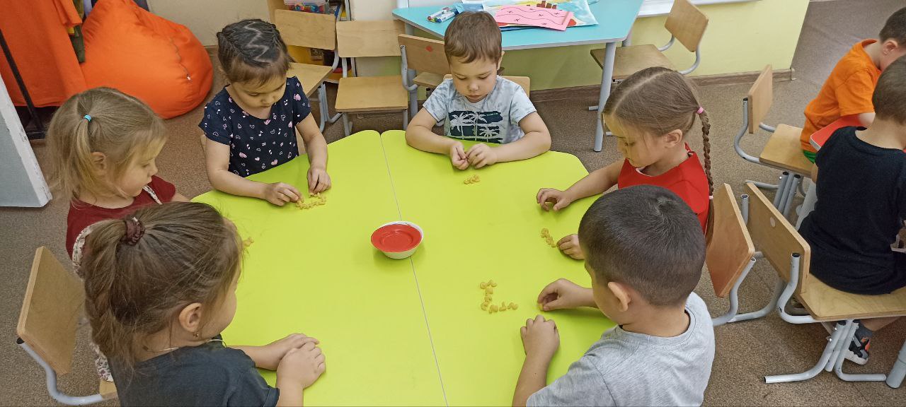 Поиграли с макаронами, закрепили геометрические фигуры, построив их из макарон. В итоге воспитанники воплотили творческую идею - выполнили аппликацию "Макароны с сосисками".