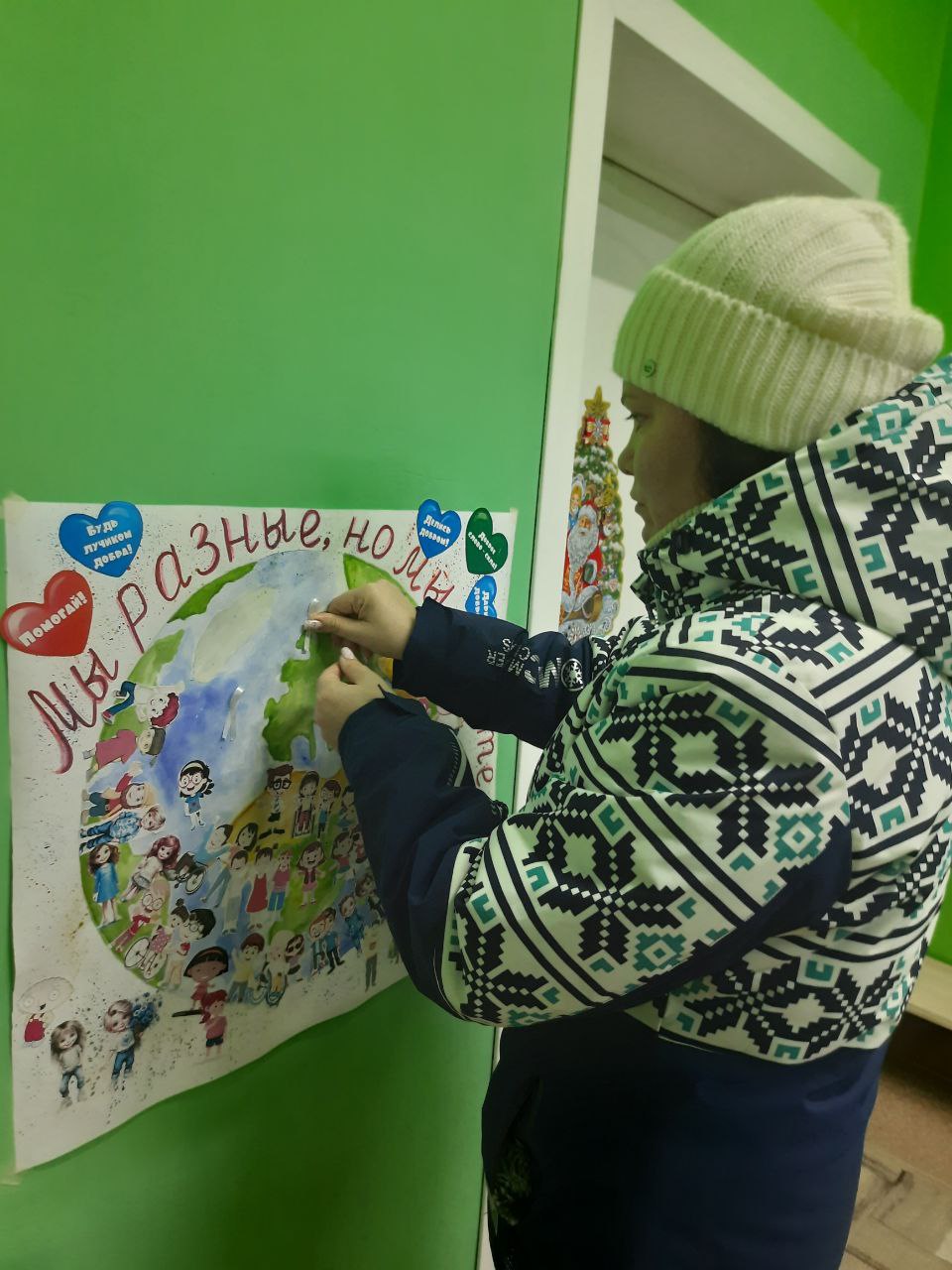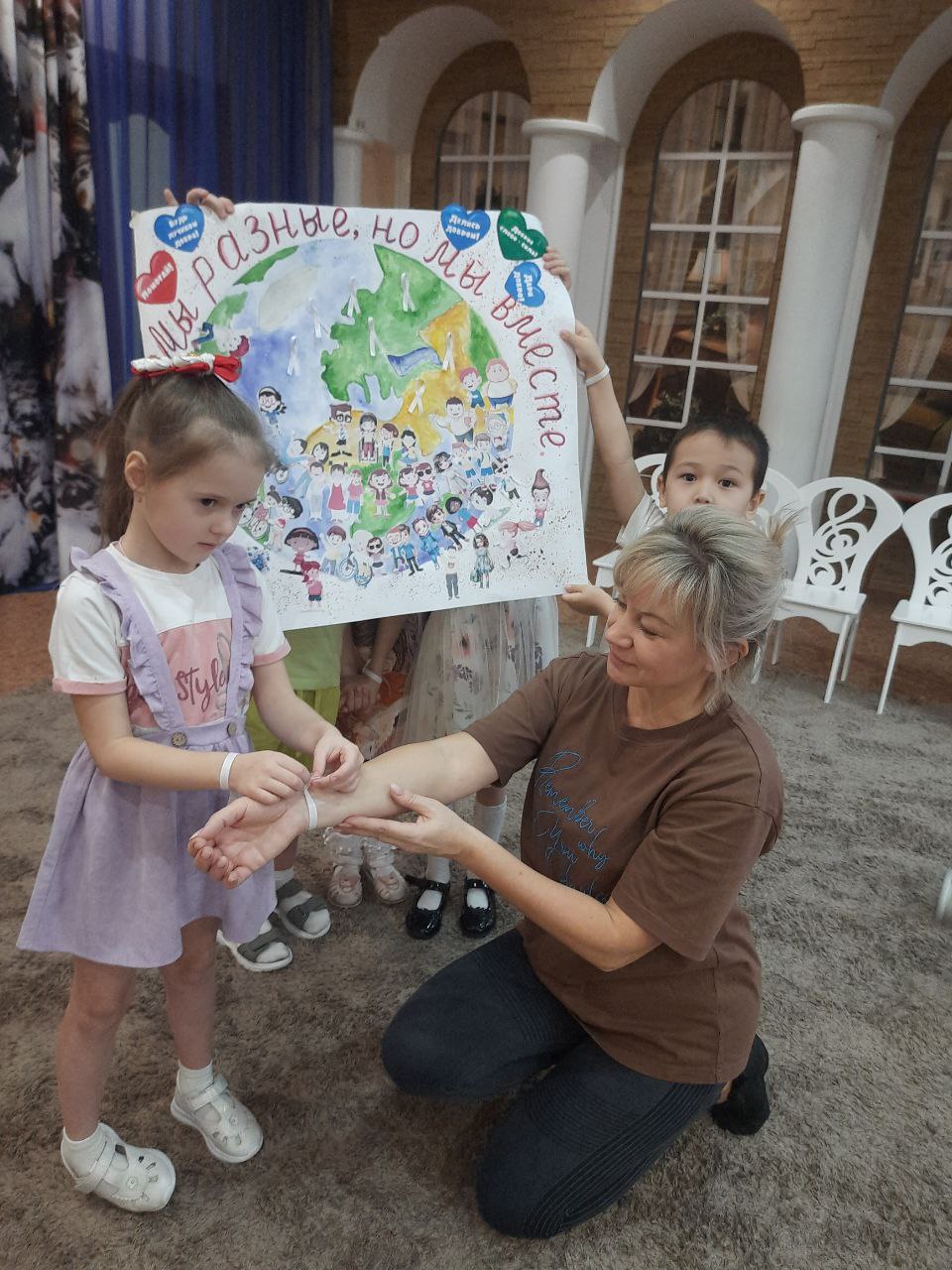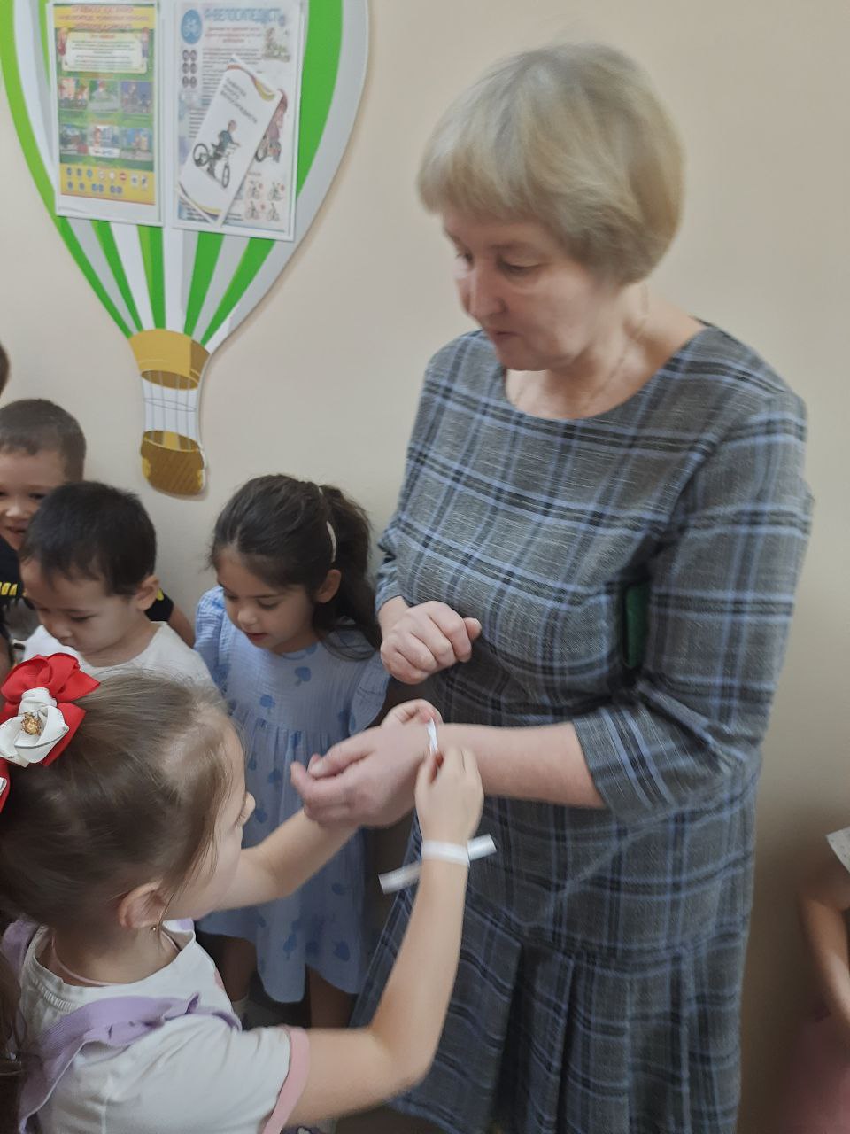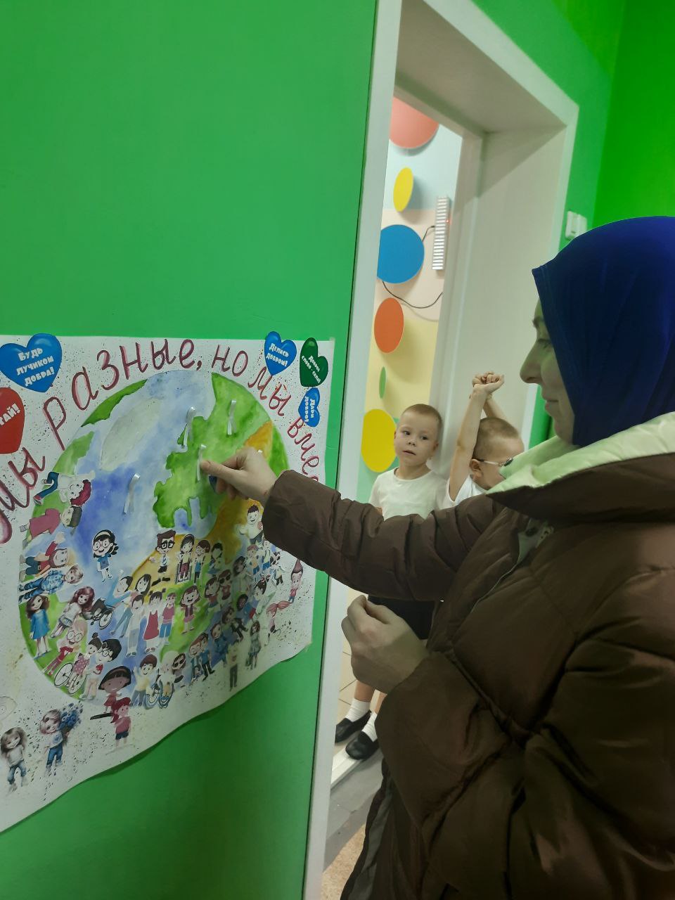 Маленькие "Непоседы" призывали принять участие всех педагогов, родителей и воспитанников детского сада, повязав на запястье всем желающим белую ленточку– символ солидарности и поддержки людей с инвалидностью и, предложив приклеить белые ленточки на плакат. А также раздали информационные буклеты.