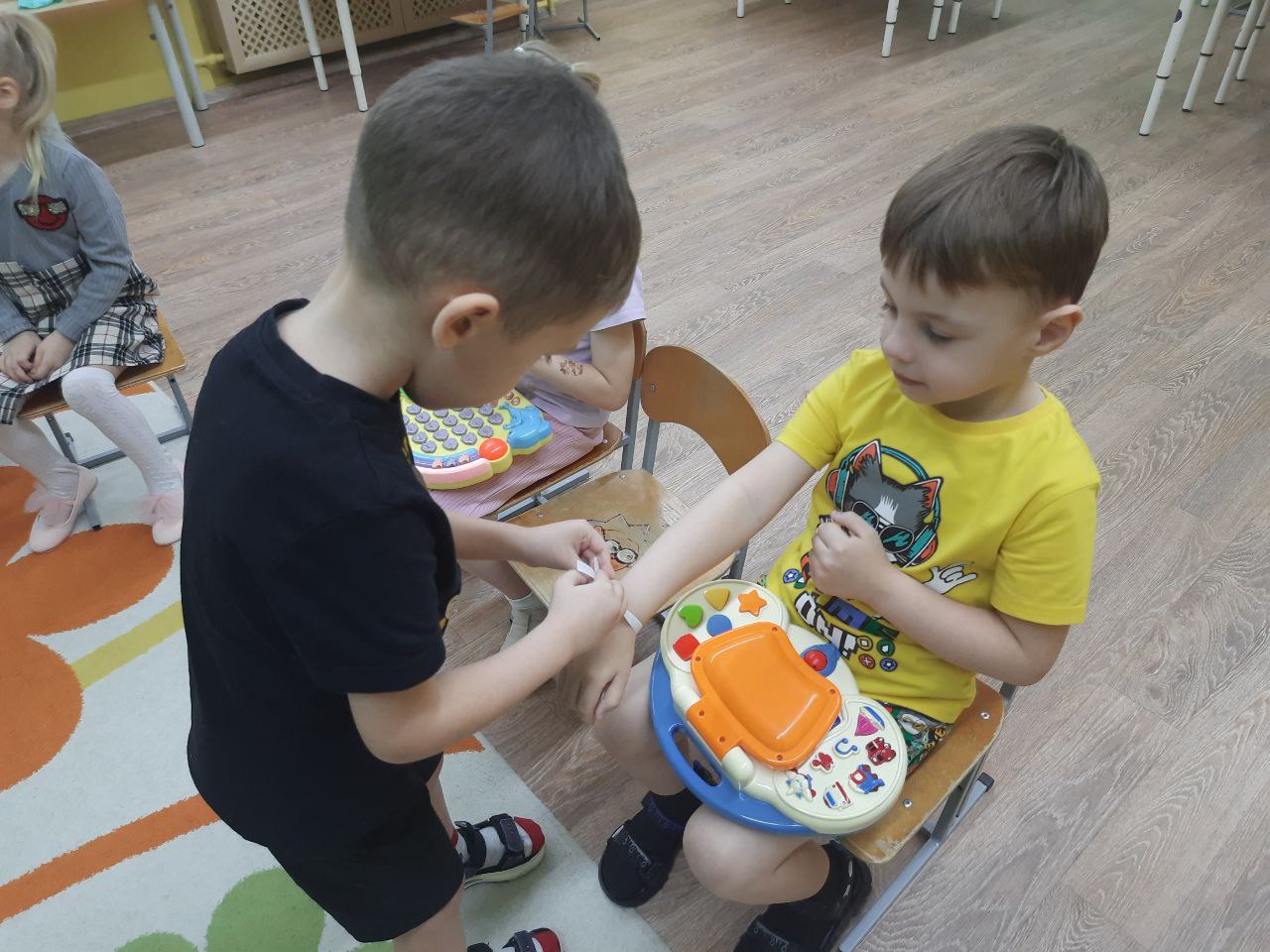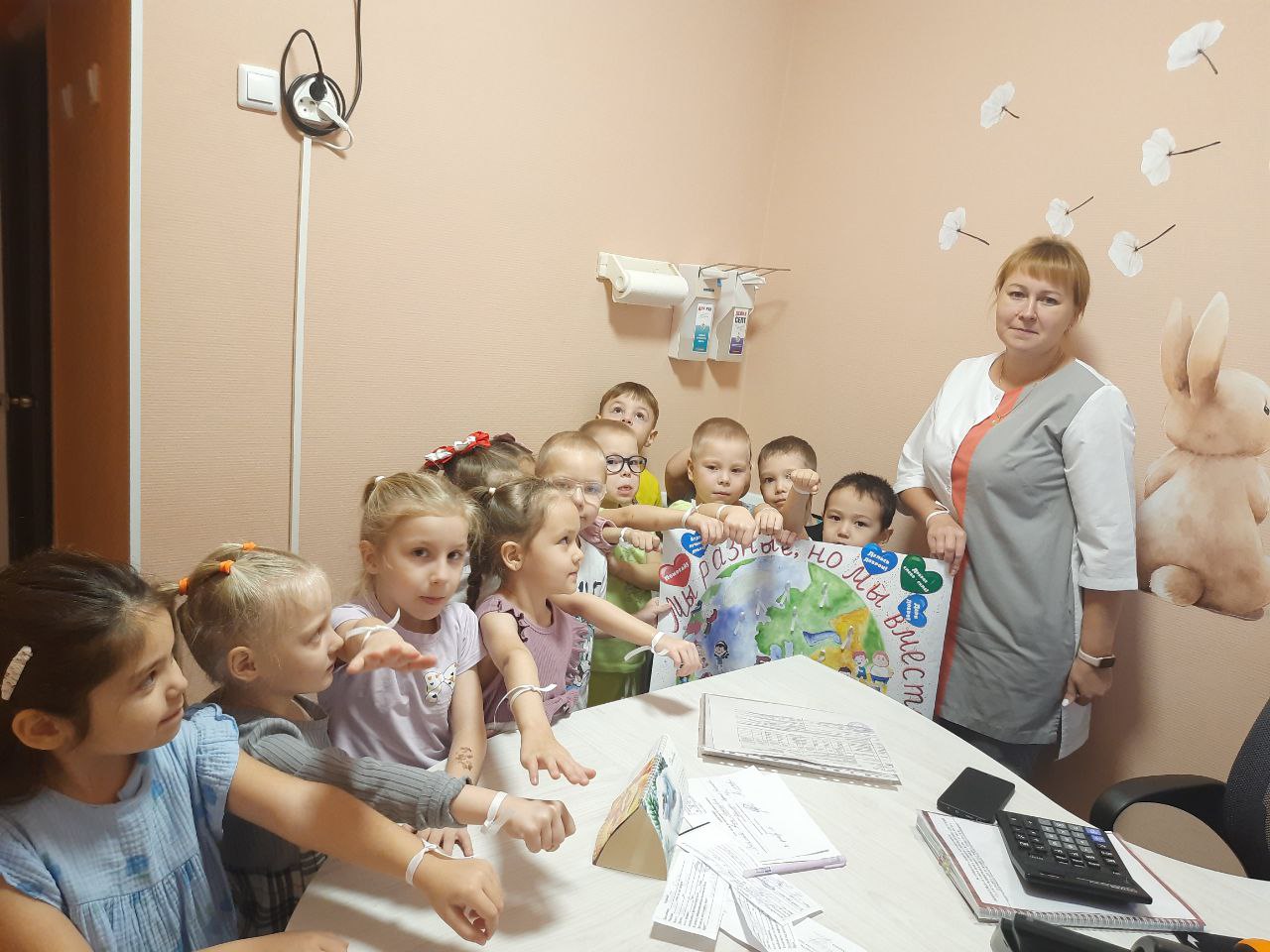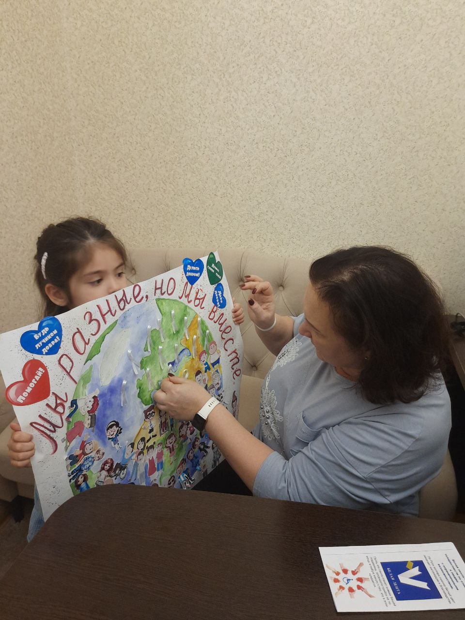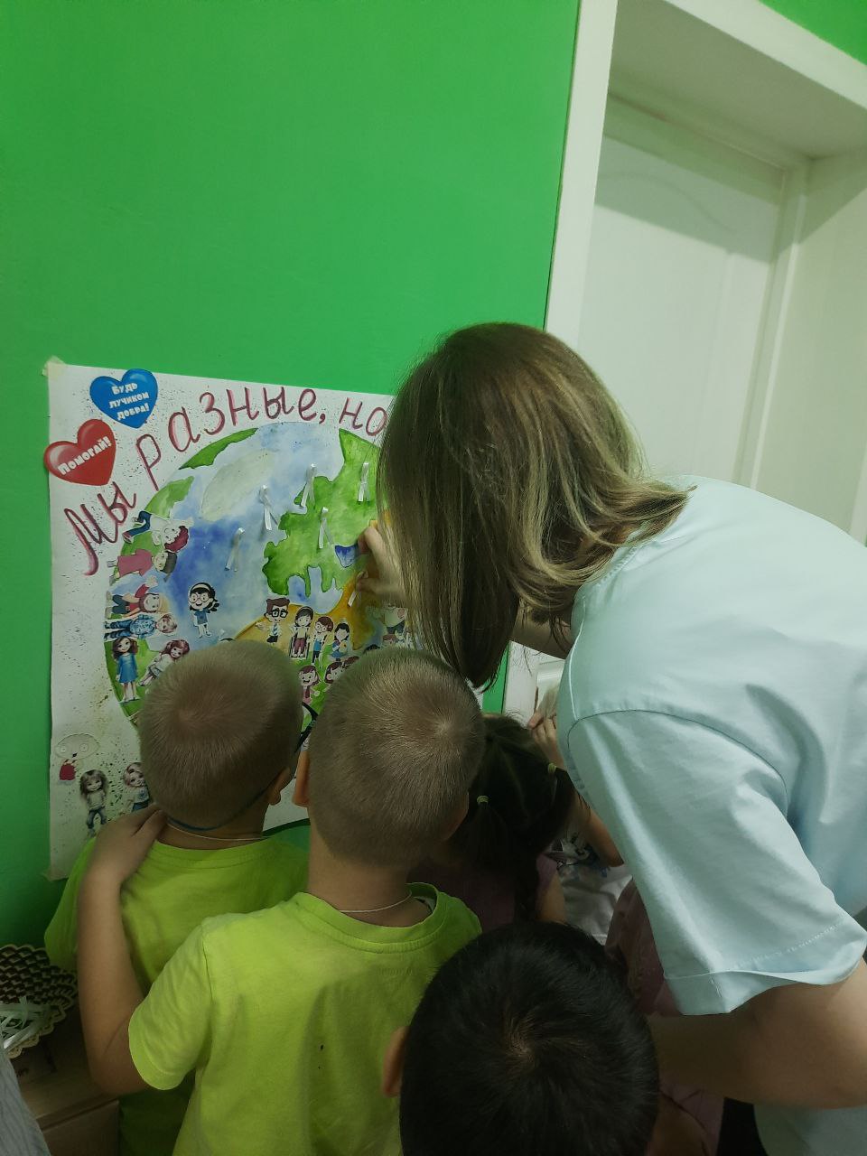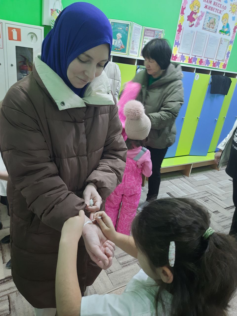 Маленькие "Непоседы" призывали принять участие всех педагогов, родителей и воспитанников детского сада, повязав на запястье всем желающим белую ленточку– символ солидарности и поддержки людей с инвалидностью и, предложив приклеить белые ленточки на плакат. А также раздали информационные буклеты.