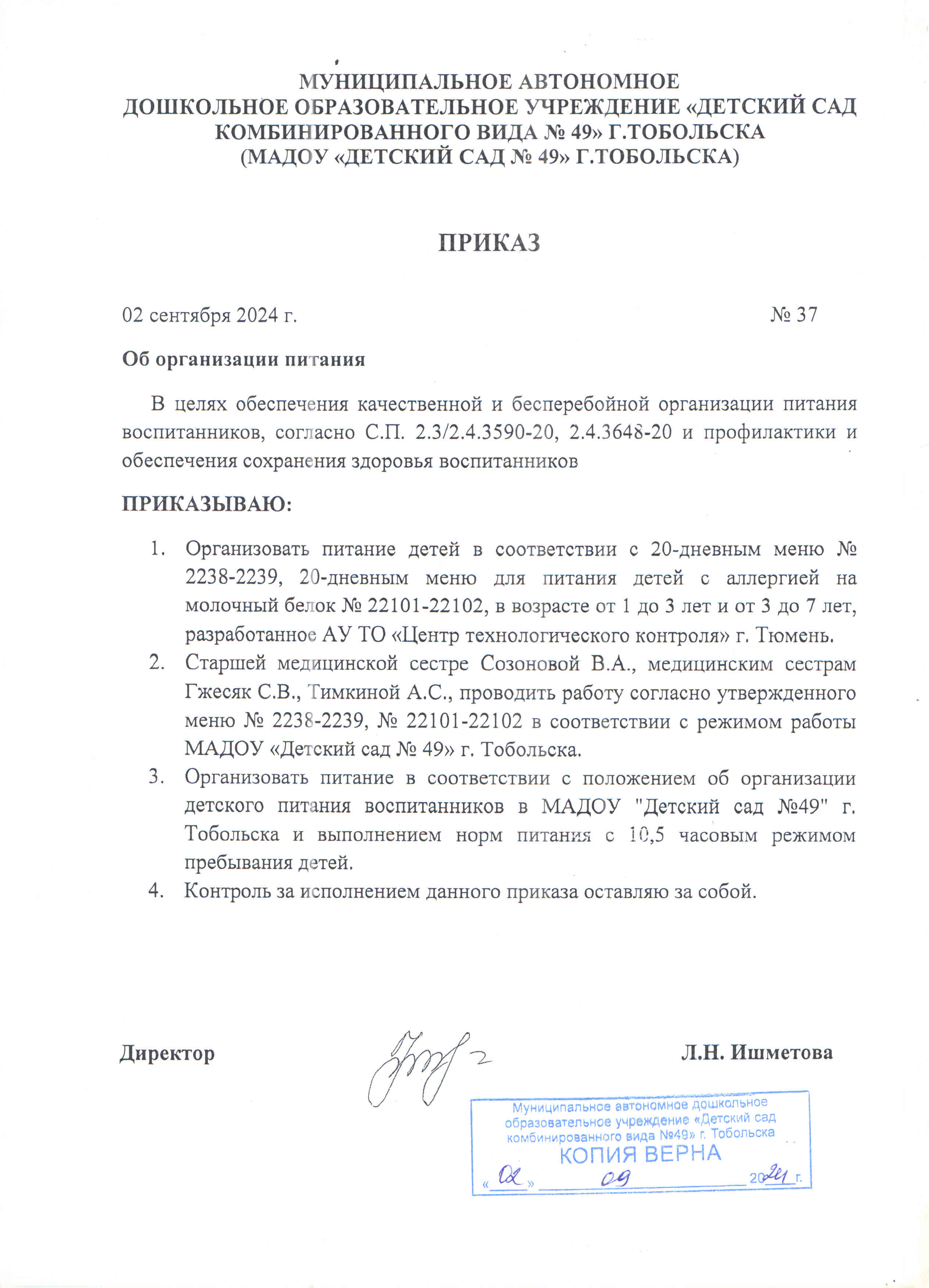 Приказ об организации питания детей, имеющих показания на замену продуктов, вызывающих аллергию